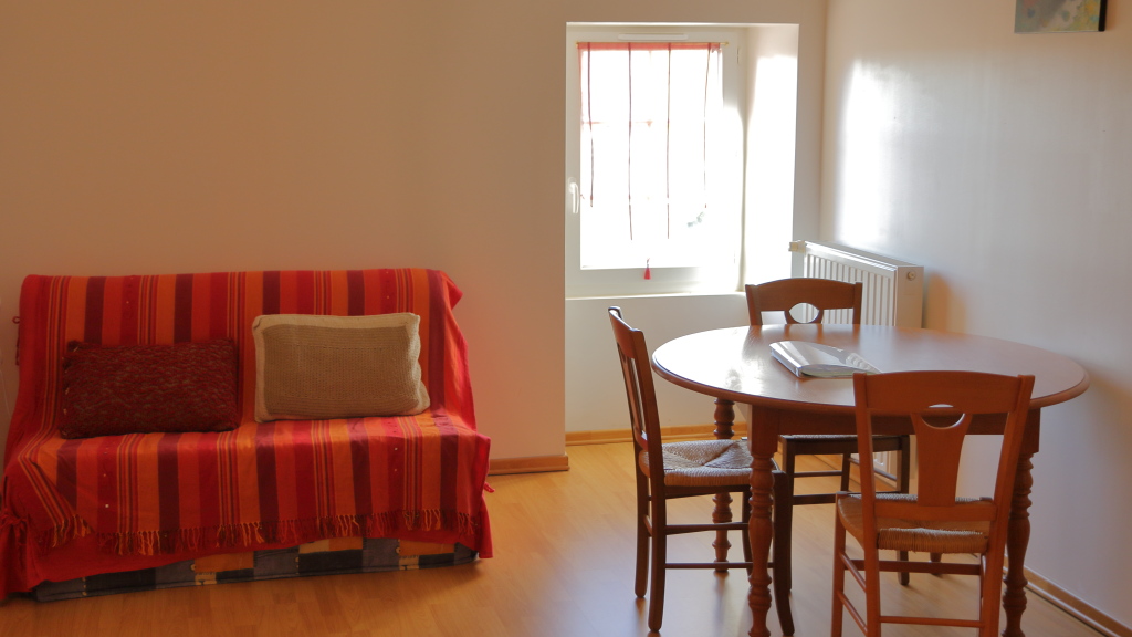 Ce coin parents est agencé d'un côté par un petit salon avec sa banquette BZ, et de l'autre par un lit de 160x200. Cette chambre permet aux familles de réaliser une halte en toute tranquillité.
